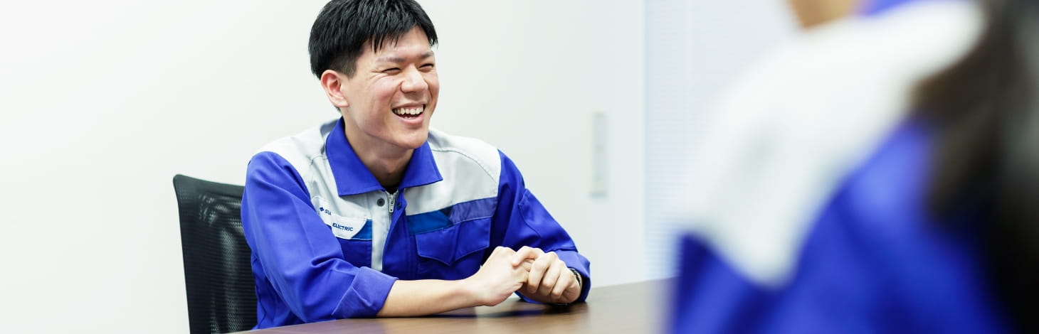 生活に必要不可欠な電気の分野に携わりたいと考え、インフラ業界を中心に就職活動を行っていたところ、住友電工に出会う。現在は架空送電線の製造に携わり、製造工程設計、安全・環境・品質・コストの面からアプローチした設備や作業環境の改善、老朽化設備の補修・更新計画の策定などを担当している。