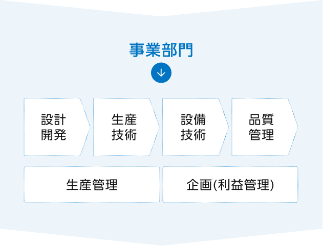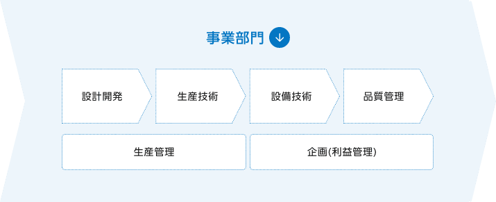 市場や顧客動向から年間の利益計画を立て、計画と実績を分析し経営課題の把握・報告を行う企画業務や、モノを納期通りに製造するための各種マネジメントを生産拠点で担う生産管理といった仕事があり、文系出身の社員も多数活躍しています。営業