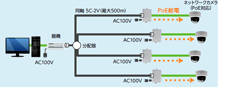 同軸ケーブル長とは関係なく最大15.4Wが給電可能になります。