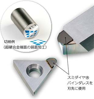 ※ナノ多結晶ダイヤモンド(スミダイヤ®バインダレス)は住友電気工業(株)が開発した材料で、数十ナノメートルサイズの微細なダイヤモンド粒子が強固に直接結合したダイヤモンド単相のナノ多結晶体です。2015年2月18日に放送された「ワールドビジネスサテライト(テレビ東京)」で『ニッポンの素材力』というテーマで、日本のモノづくりを支える人工ダイヤとして紹介されました。