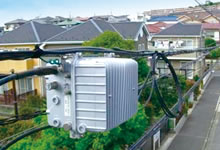 基地局センターと一般家庭を繋ぐ伝送路で、放送や通信の信号を数十km先まで伝搬させることができます。