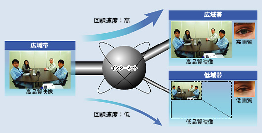 - 独自の通信・画像補正技術により飛躍的にパケットロス耐性を高め、回線品質が保証されていないインターネット回線でテレビ会議が可能