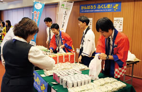 東日本大震災の復興支援の一環として、4月26日・27日に、住友化学(株)と共催で被災地応援マルシェを、大阪本社がある住友ビルで開催しました。