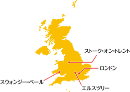 イギリスと当社グループとの関係は古く、1931年(昭和6年)の仕向地別の輸出額では、全体の56%と1位となっています。その後、ロンドンに駐在員事務所を開設、1972年にはイギリスで初となるグループ会社を設立。東欧諸国の自由化、欧州連合の発足、また、最近ではリーマンショックなど、大きな環境変化を乗り越え、現在では5社を展開しています。