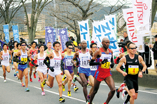 3月3日(日)に、当社が特別協賛した「第68回びわ湖毎日マラソン大会」が大津市にて開催されました。当日は、気温6.3度と厳しい気象条件の中、早春の琵琶湖畔を舞台に国内外招待選手14名など、総勢約300名の選手が健脚を競いました。
