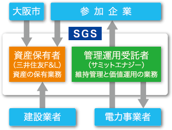 また同プロジェクトは廃棄物処分場という非常に制約が多い場所に建設されるため、企業がさまざまな工夫をおこない長期間の安定稼働対策を講じていますが、建設維持管理コスト負担が大きく、内閣府から総合特区事業としての利子補給や、大阪市から地方税の優遇措置の支援をいただき、国、地方自治体、民間企業が連携して実施されます。