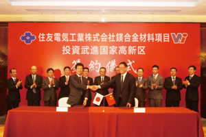 当社は、マグネシウム合金「AZ91」板材を用いたエレクトロニクス製品用筐体事業への進出を決め、世界のノートPC製造拠点が集中する中国華東地区に位置する江蘇省常州市に同筐体を製造・販売する「住電軽合金(常州)有限公司(SCLA社)」を設立しました。