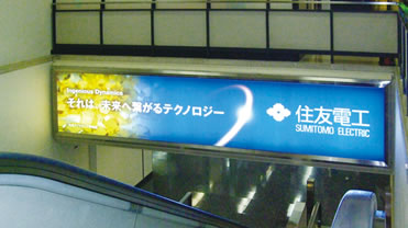5月から大阪国際空港(伊丹空港)の北ターミナルの18番ゲート近く、到着して出口に向かう途中の階段の上に当社の看板を新たに掲出しました。