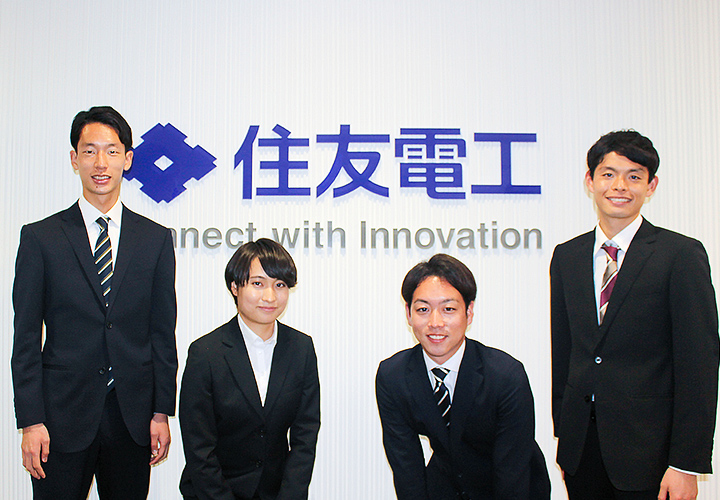 左から、西川雄一朗 (長距離)、御家瀬緑 (短距離)、田中翼(スタッフ)、阿部弘輝 (長距離)です。